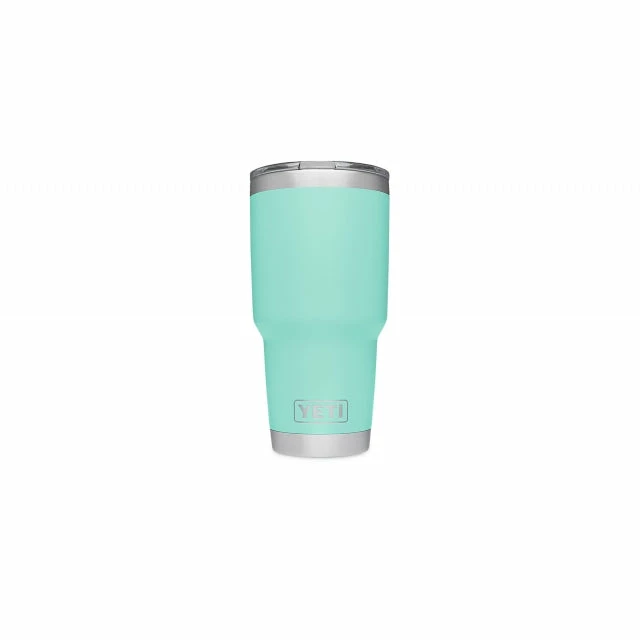 YETI Rambler 30 oz Tumbler in DuraCoat Seafoam Green is now with the Magslider lid. Made of 18/8 kitchen-grade stainless steel and double-wall vacuum insulation. Dishwasher Safe. BPA-free.